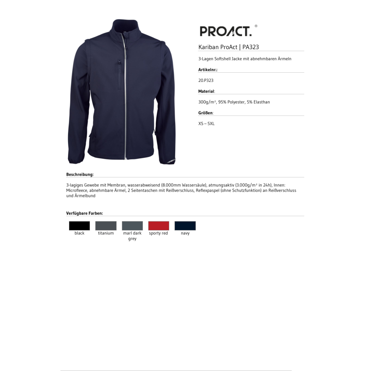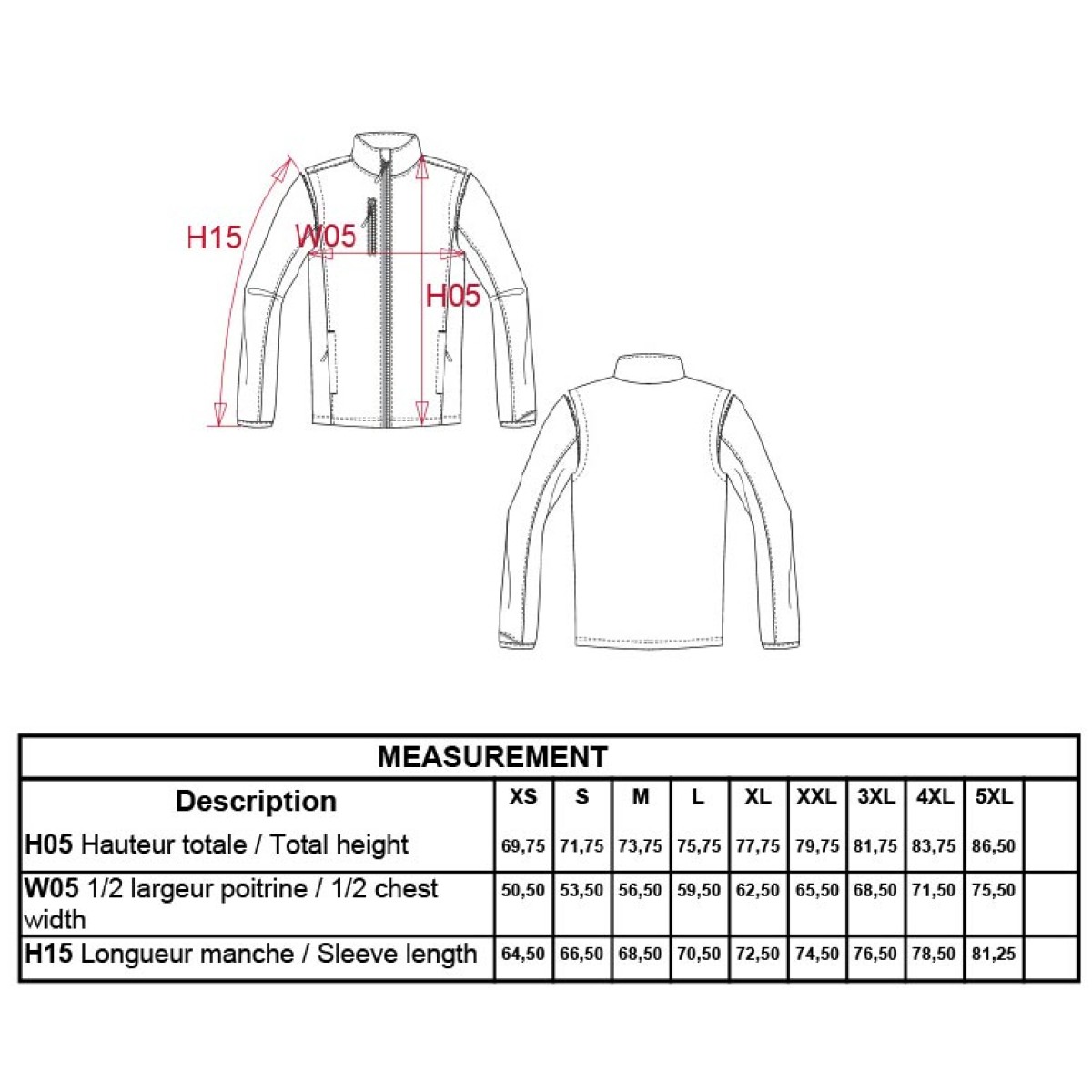 95% polyester/5% elastane. 3-layer bonded fabric. 3000 gsm/24h breathable and 8000 mm water-resistant. 95% polyester/5% elastane outer shell. Breathable mid layer. Microfleece inner layer. Full length front zipper with reflective piping. 2 side zipped pockets and 1 zipped chest pocket. Detachable sleeves with elasticated cuffs and reflective trims.